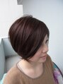 思いっきり前下がりのクールなショートスタイル。サイドとバックをかなり切り込みました。カラーリングも髪や肌に負担のかかりにくいオーガニックカラーのアッシュを使い深みのある綺麗な色です。