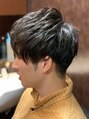 サイドはツーブロックで後ろは刈り上げてますマッシュベースのカットですが毛量を軽くして無造作セットをしやすくしてあります。