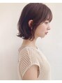 切りっぱなしにカットして、トップにレイヤーを入れてふわっと軽い質感に。自然なくびれスタイルてまスタイリングが楽です。カラーはエヌドットカラーのフォギーベージュ。