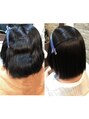 縮毛矯正のbefore・afterです。強めなクセもしっかり伸ばします。低・中軟化、高還元で施術するので薬剤ダメージも抑えられます。