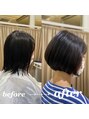 広がりやすい方でも髪質改善ストレートをかけてまとまりやすいボブスタイルに。縮毛矯正をかけると真っ直ぐになりすぎてボブ特有の丸みが出にくいと思いますが、こだわりの薬剤でオリジナルのかけ方をして丸みはしっかり残します。