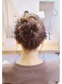 少し低めのルーズなお団子アップ。実はどんな場面にも合わせやすい万能ヘア。