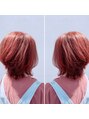 前下がりウルフスタイル。バックのくびれをお家でも再現しやすくする様にカットあとお顔周りはあまり変えたくないとのことバックのスタイルに似合わせて作りました。カラーは透明感のある白髪染めでスィートピンクに^ - ^