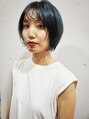 ショートヘアにカッコよさをプラスするため、地毛よりも暗いアッシュブラックをオン!シースルーバングにすると、黒髪でも抜け感があります♪