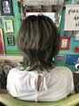プラチナアッシュに毛先だけ、ほんのりとグリーンを入れたマッシュウルフです。