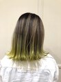 裾カラーとグラデーション、外ハネは相性抜群!ケアブリーチで丁寧に色を抜き、毛先のみ蛍光イエローで一味違う仕上がりに(^^)