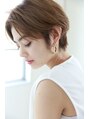 ルーズなセンター分けで大人の魅力を存分に発揮。マッシュベースでまろやかなシルエットは女性らしさをかんじさせるショートに。