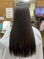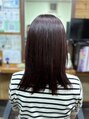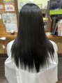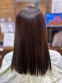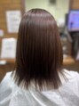 中間から毛先の部分は12レベルで、トーンアップ。根元は8レベルでカラーリングしました。全体的にトーンを合わせられて、色味もいい感じになったんじゃないかと思います。