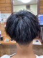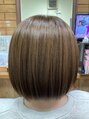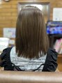 - カットはバックを中心にすいて軽くして毛先に動きが出るようにしました。カラーはアッシュ12レベルで塗布