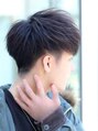 ナチュラルなツーブロックと刈り上げでスッキリとした印象を与え、パーマはエアリー感と躍動感を与えます。パーマ強弱はご来店されてからご相談頂けます。