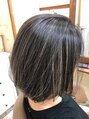 【CUT】切りっぱなしボブ【COLOR】ブリーチで全体にハイライト。その上からプラチナアッシュでカラーリング。通常のカラーより伸びてきても気になりにくく、白髪ぼかし効果も◎