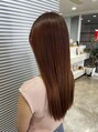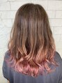 表面のグラデーションはハイライトのような入れ方をすることによって、境目の部分をきれいに馴染ませるようにしています。巻いて仕上げる事で更に自然なグラデーションに!秋映えするイルミナのコーラルで艶のある秋色に!