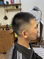 スケーターを思わせるストリートボウズ。0.8mmからのフェードを効かせトップをハサミで丸いシルエットにした王道ストリートスタイル。