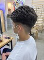 サイド、バックをソフトフェードに刈り上げ、流れる様にパーマを。朝のスタイリングがとっても楽です!
