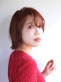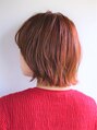 肩上ボブも、ウルフ要素を取り入れる事で今っぽく仕上げました。オレンジカラーは目を引くトレンドカラーです。前髪を女性らしく流す事で、どのジャンルでもチャレンジしやすいスタイルです。毛先は外ハネにスタイリングをして、ウルフさを際立たせました。