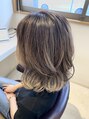 コントラスト強めでバレイヤージュを入れたミディアムスタイル。根元が伸びても気になりにくく、カラーを足すだけで何度も楽しめるカラーリングです。グレージュに少しパープルを入れて透明感を出してます。このカラーをしたい方は上野指名でお願いします。