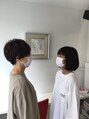 親子でカットに来てくれました!(母)パーマを活かす様にカット、サイドとバックは刈り上げてツーブロックに。(娘)肩にあたる位の長さのボブ。アイロンで毛先を内巻きに巻いて仕上げ。