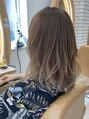 透明感たっぷりのミルクティカラー(^^)毛先に行くにつれて明るくグラデーションにしてあるので、巻くとより透け感が出ます!くすませすぎない色味はお肌もキレイに見せてくれますよ♪