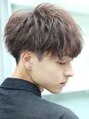 ナチュラルなツーブロックと刈り上げでスッキリとした印象を与え、パーマはエアリー感と躍動感をや与えます。パーマ強弱はご来店されてからご相談頂けます。