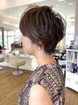 ショートボブのスタイルに少しパーマがかかっています!トップ、後頭部のボリュームや小顔など様々な悩みに対応出来るスタイルです!似合う年代の幅も広く、細かな調整も可能です^ ^
