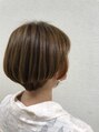 マッシュショート。分け目を変えると雰囲気も変わります。カラーは明るめに。ポイントで耳周りにオレンジカラーを入れています!