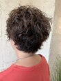ショートのピンパーマスタイル!丸みがでない様に全体をピンで軽めのツイストを加える事でランダムな動きがでます!スタイリングもハーフウエットの状態からワックスを揉みこんで自然乾燥させるだけで、動きと立体感が出るのでスタイリングも簡単に決まります