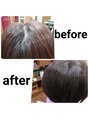 ボリュームエクステのビフォー/アフターです。トップがふんわり仕上がります。
