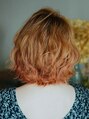 大きめの波ウェーブがポイントのボブカット。ベースはナチュラルなワンレングスボブです。コテを使って表面に毛先外ハネのウェーブを作っています。バングはワンカールに巻いたあとにランダムにほぐしてあげるのがポイントです!