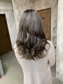 オリーブグレージュで作るハイライトです。ハイライトを目立たせる為にベースを暗めにしています。赤みが強いお客様ですがハイライトブリーチをする事で柔らかさと透明感がでました!