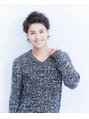 前髪をかき上げたような雰囲気が爽やかなショートウルフスタイル。カラーはピンクブラウンをチョイスし、さりげなく男の色気を漂わせます。ニュアンスパーマをかけているので、全体にワックスをなじませるだけで動きのあるスタイリングが完成。
