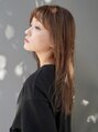 ゆるく毛先を遊ばせたミディアムスタイル。前上がりにレイヤーが入っているので、スタイリングで軽い質感が作りやすいです。前髪はやや眉を見せて、子供っぽくなりすぎず、大人かわいいラインで。シアーベージュカラーで柔らかな透明感を。