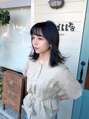 就活用の暗髪カラーと外ハネロブスタイル。伸ばしかけの方におすすめのスタイリングです。