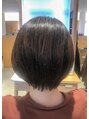 頭の丸みをきれいに見せるシルエットのショートボブです。えり足にしっかりくびれを作る事で、乾かすだけで簡単にスタイリングできるようにカットしています。耳にかけるだけで顔まわりもさらにスッキリおしゃれになります!