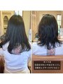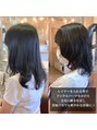 今回のお客様は10センチ程カットし、ベースをレイヤースタイルに。レイヤーを入れる事でデジタルパーマをかけた毛先に動きを出し、お仕事柄など髪を明るくできない方や、黒髪の方でも華やかな柔らかい印象のヘアスタイルになります。