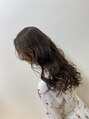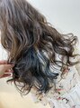 ナチュラルベースの落ち着いたカラーにインナーをブルー。前髪は流して甘辛スタイル