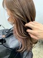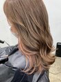 薄めのコーラルピンクのインナーカラーです。全体をベージュ系に仕上げて柔らかい印象にしています。