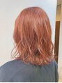 きりっぱなしスタイルで顔周りにベージュを入れ、全体はレッドのカラーです!外はねだけでもスタイリングもいいですが、細い束でランダムに巻いてあげても可愛いです。仕上げにオイルのスタイリングでセットするのがおすすめです◎