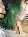 インナーカラーを襟足まで入れた外ハネボブですインナー部分のみブリーチorカラートリートメントで人目を惹くデザインに!