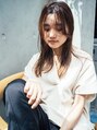 前髪長めのロングスタイル。アウトラインはぱつっとラインを揃えてカットし、ボリュームが出過ぎないように量感を調節するのがおすすめです。