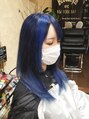 流行のフェイスハイライトにグラデーションをあわせたヘアカラーです★ハイライトの青に合わせて相性のいいベースはネイビーブルーです!