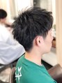 横と後ろは、スッキリ刈り上げに!!トップと前髪を少し長めにカットすることでトレンドのmen'sスタイルに♪毛量が多い方などにオススメなスタイルです!