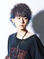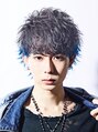 カットは束感王道ヘアで、襟足は少しし長めに設定。全体のカラーはブリーチ後にグレー強めのグレージュカラーにし、こめかみより少し下の部分のサイドから襟足にかけては、サファイア・ブルーでインパクトをプラス!