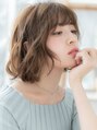 くせ毛風カールで大人かわいい雰囲気に仕上げた外国人風ふわミディ。前下がりで輪郭カバーして小顔見せ。耳かけしたり、斜めバングや厚めバングで目元を印象付けても大人かわいい。(メイク担当:上尾店 中田)