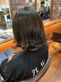 外ハネスタイルで毛先に動きを出し、透明感のある濃いめのアッシュ系カラーで派手になりすぎない、個性を出しました。