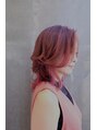 フラミンゴピンクで華やかなスタイルへ。効果的にハイライトをのせることで、ピンクの色合いに濃淡をつくります。思い切って、サイドとバックにいれたレイヤーでウルフベースに。菱形バランスにクビレをつくることでうまれるメリハリがとっても良い感じです。