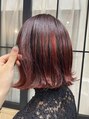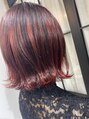 ベースはブリーチでバレイヤージュが入った履歴に赤とオレンジのミックスした色味のみをかぶせました!表面はハイライトっぽくグラデーションになっています!