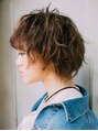 マッシュ系のショートスタイルに柔らかいカールをプラスしたスタイルなのでショートでもアレンジが楽しめます!ヘアカラーはナチュラルなブラウンベージュにハイライトを混ぜたスタイルなのでさらに陰影ができてオススメ
