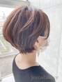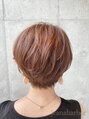 40代髪型☆オシャレショートボブ。前髪は長めでどちらに流してもオッケーでスタイリングも簡単です!明るめの白髪染めで軽さと動きも。大人かわいいショートボブ、無造作ボブ、大人ショート、前下がりボブ、カットに失敗した経験のある方是非お越し下さい。