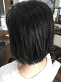 切りっぱなし風のボブ。前髪にパーマをかけて扱いやすく。