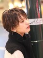 クセを活かすツヤ感ハンサムショート。ブルーバイオレットベースのカラーが程よく黄色を打ち消し、華やぐブラウンに。すっきりシルエットで首元もかさばらない、秋冬の街に映えるショートスタイルです。
